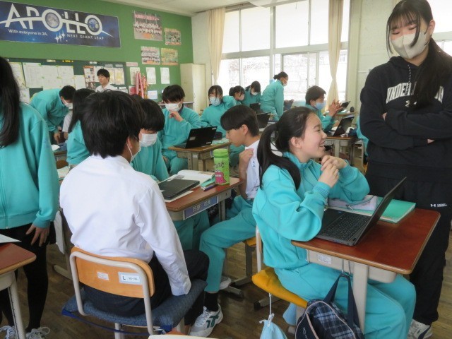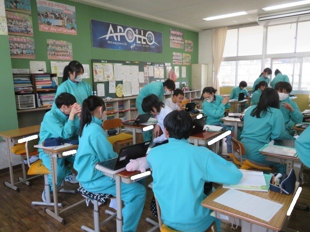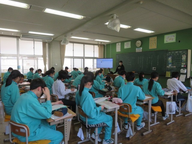2年A組の道徳の時間です。主人公がつり銭をごまかしたことを後悔し、その後悔を胸にかかえながら暮らし、おばあさんはは他界していて返せなかった…主人公の生活の苦しさと誠実さがつたわる話から考えを深めていきます。