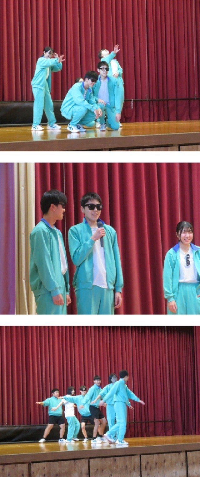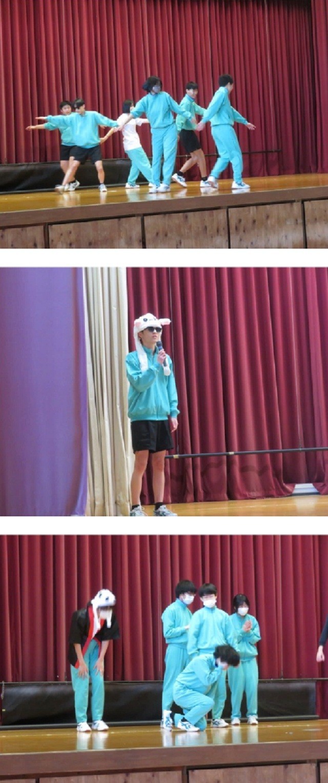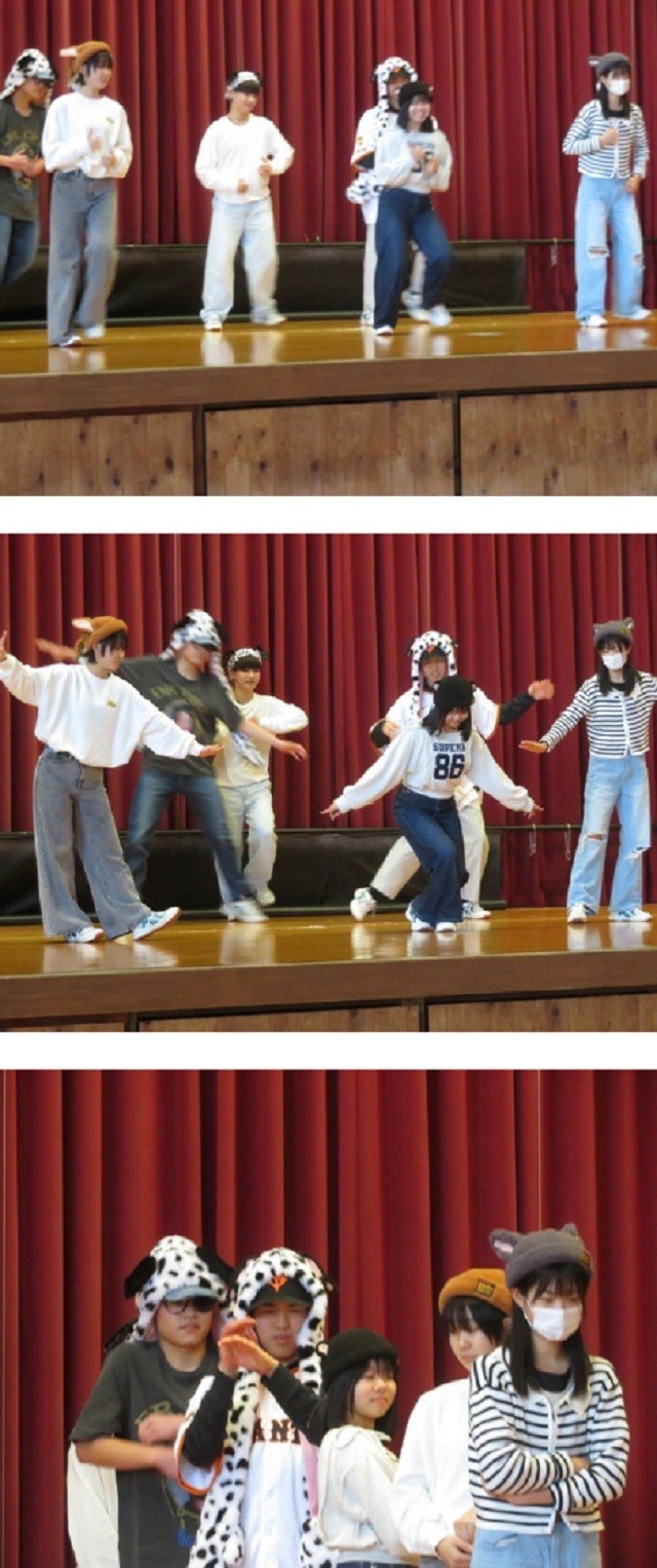 3年B組の保健体育の時間です。今日は創作ダンスの発表、それぞれのグループで考えたダンスを披露しました。