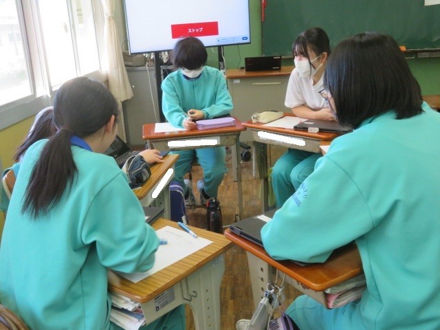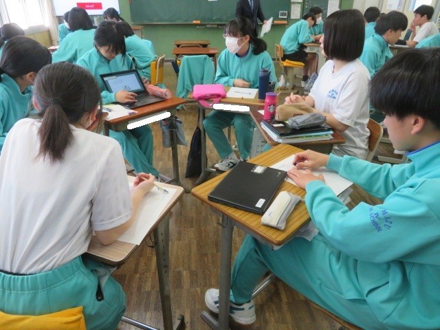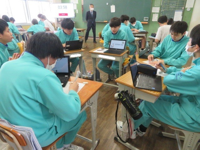 3年B組の理科の時間です。それぞれに追求してきた課題を発表しています。3年生らしい内容です。