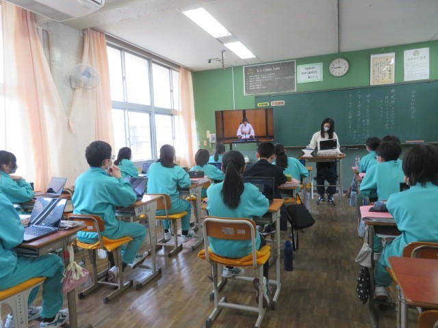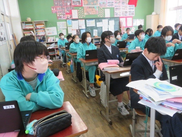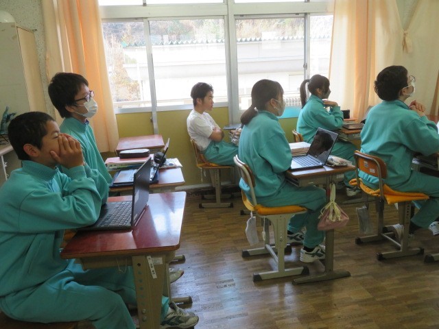 1年A組の国語の時間です。日本の伝統芸能『落語』について学習しています。現代風にアレンジされた落語の世界に入っています。