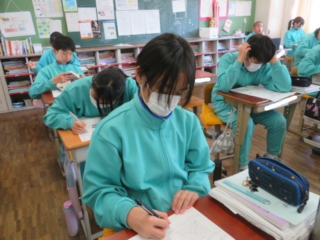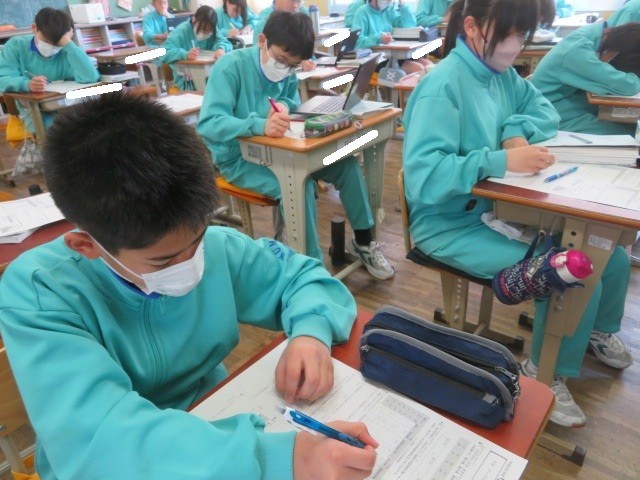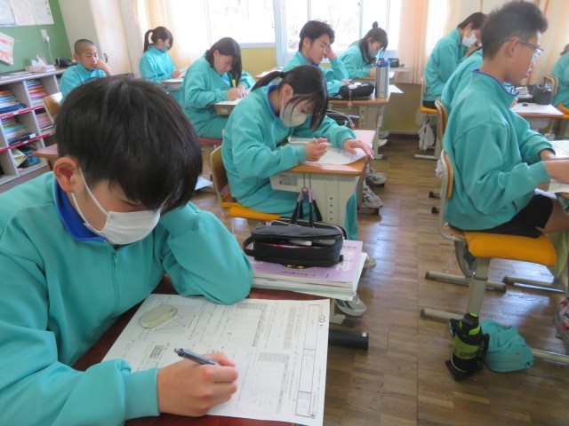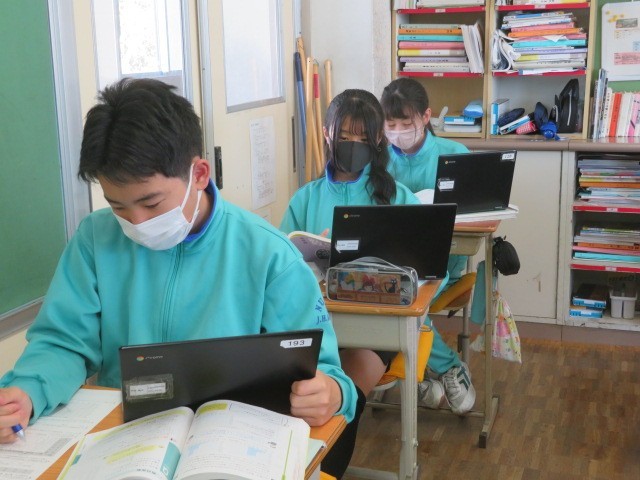 1年A組の数学の時間です。データの活用について、学習診断に取り組んでいます。