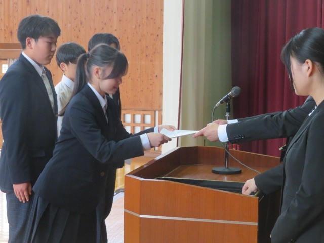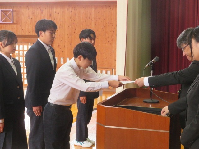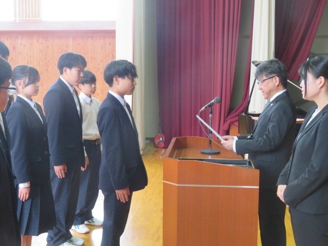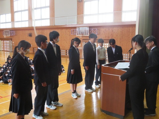 令和8年度生徒会本部役員、専門委員長の任命が行われました。第四中の伝統の一つである自治の精神を発揮する中心としての活躍を期待しています。