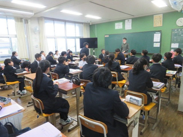 1年B組の数学の時間です。これから一年間学習していくにあたり、先生に自己紹介をしています。