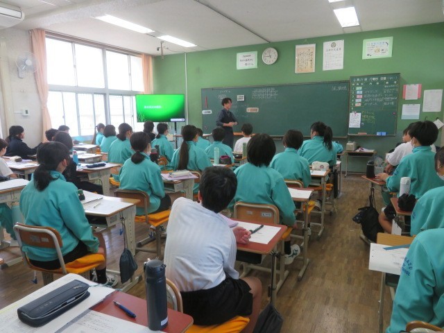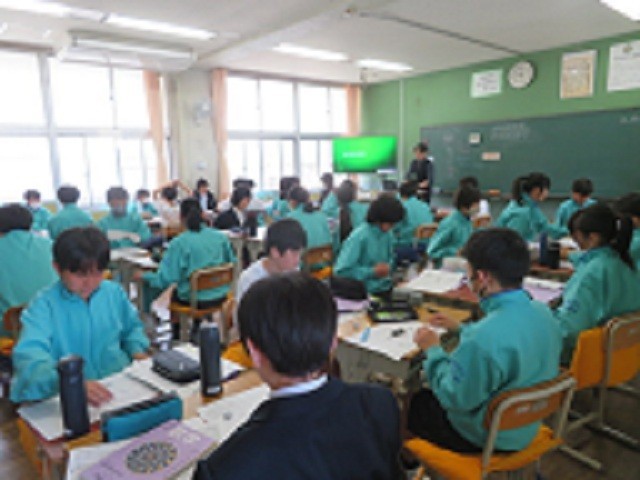1年A組の数学の時間です。新しい数の見方に接しています。