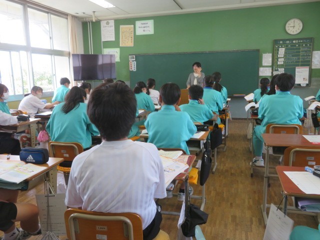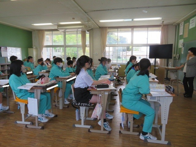 2年B組の家庭の時間です。わたしたちの成長に必要な食生活などについて学習しています。