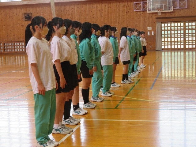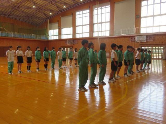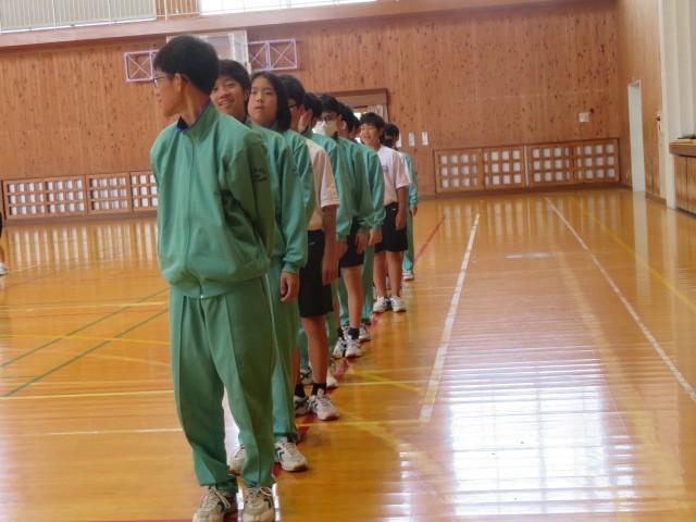 2年B組の保健体育の時間です。集団行動を行っています。号令で動く姿も、2年生らしくひとまわり立派さを感じます。