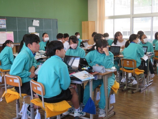 3年B組の社会の時間です。第一次世界大戦の学習を進めています。新兵器が登場した背景について確認しています。
