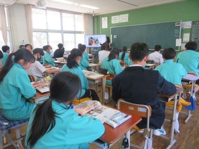 3年B組の英語の時間です。Unit1、いくつもの動物、南アフリカが舞台のようです。