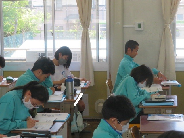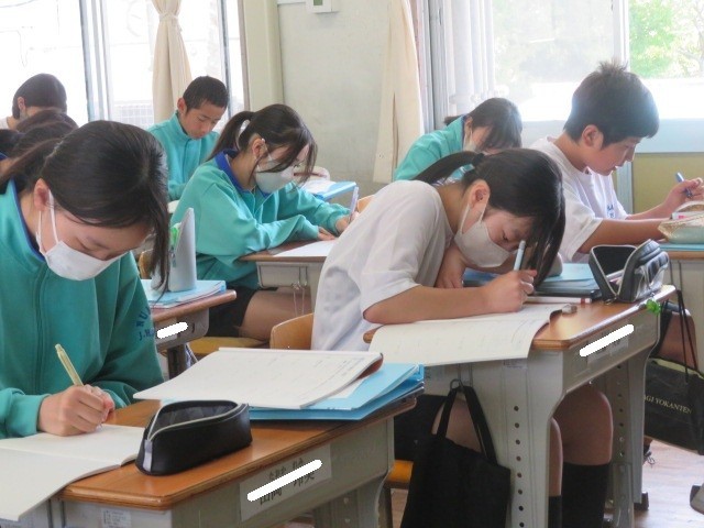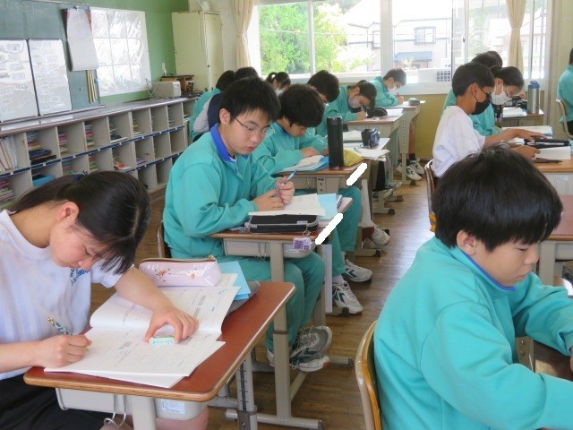2年B組の数学の時間です。文字式の計算をいくつかの方法も試しながら行っています。