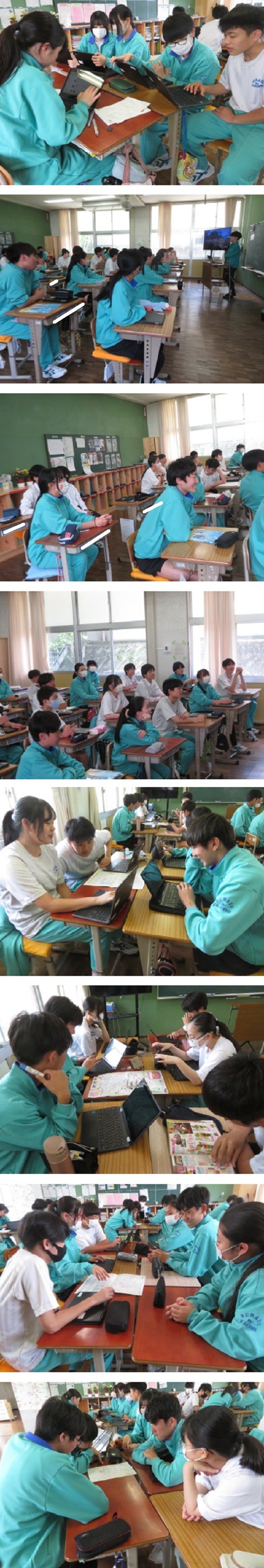 修学旅行まで1か月あまりとなりました。休日もあり限られた日数の中で準備を進めています。学級コースが概ね決まり、班ごとのタクシー研修の見学地の検討に入っていました。