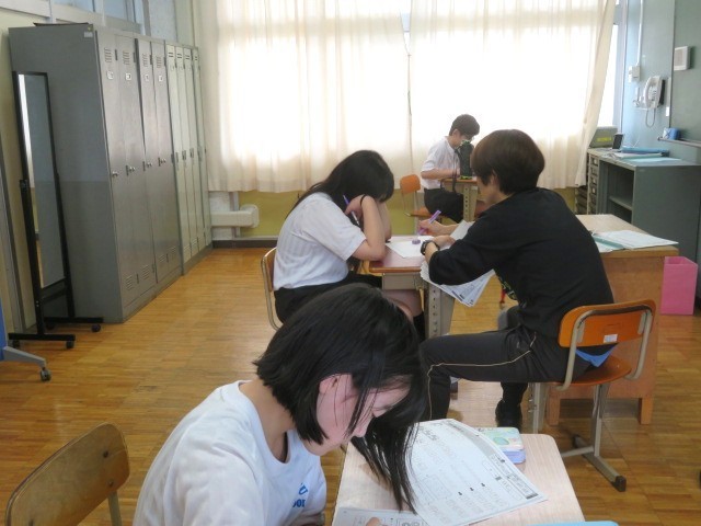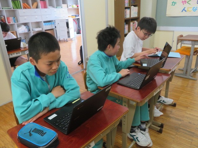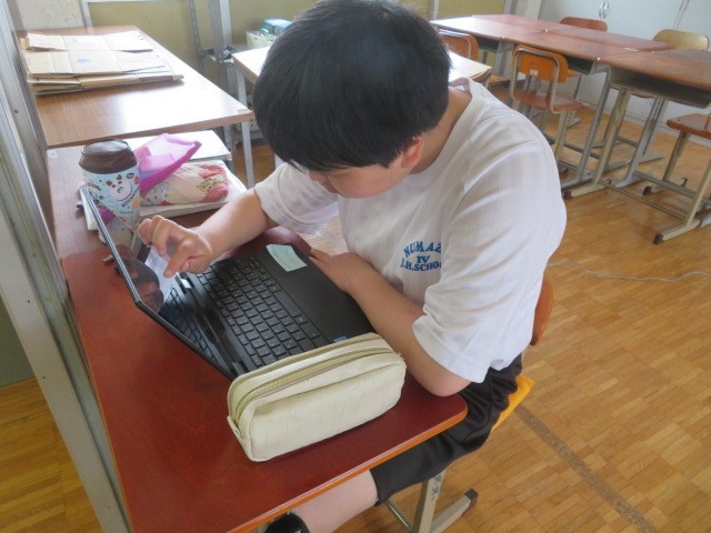 E組数学の時間です。問題へ一生懸命取り組みました。終わってからは調べ物等しました。