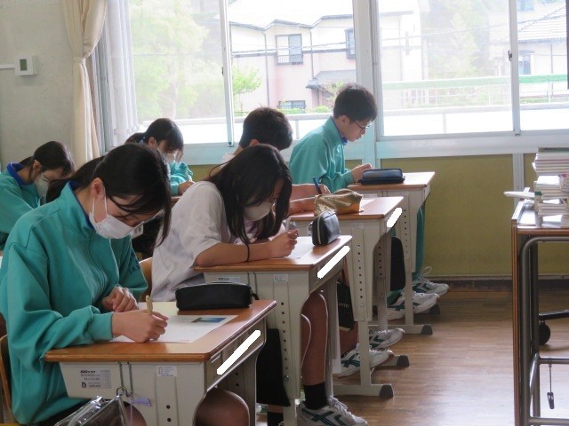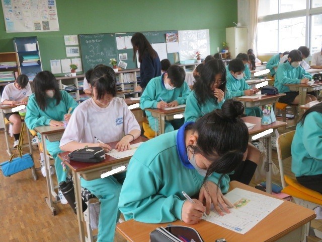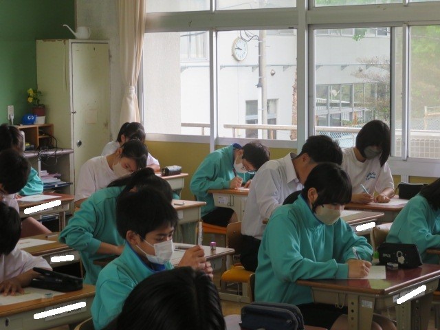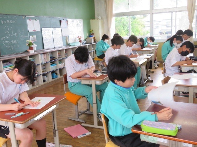 2年B組の国語の時間です。『名付けられた葉』の単元テストに取り組んでいます。