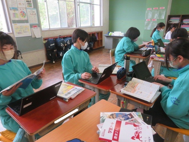 2年A組の社会の時代です。安土桃山時代、織田信長、豊臣秀吉の政権の様子についてまとめています。