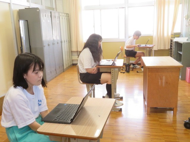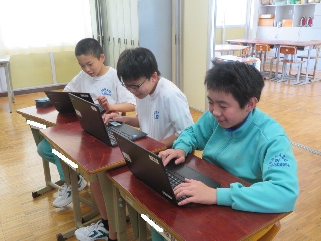 E組の様子です。2時間目の国語の学習を終え、タブレット端末を使用して、それぞれに興味のあるものを調べたり、取り組んでいます。