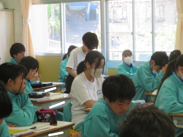 1年A組の国語の時間です。学習問題を設定し、課題を追求していきます。