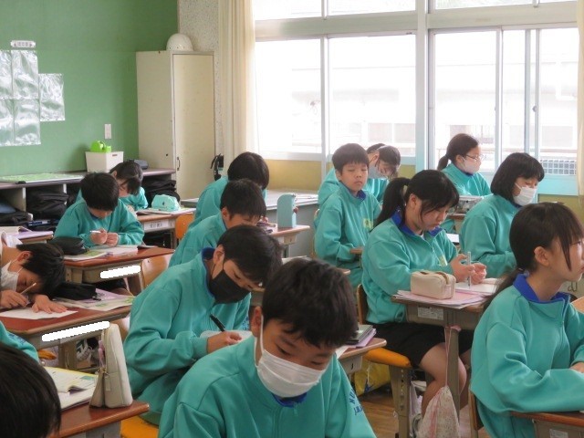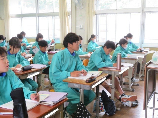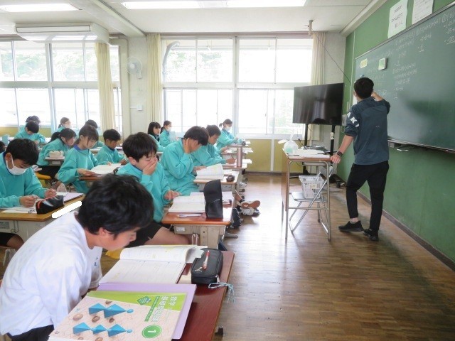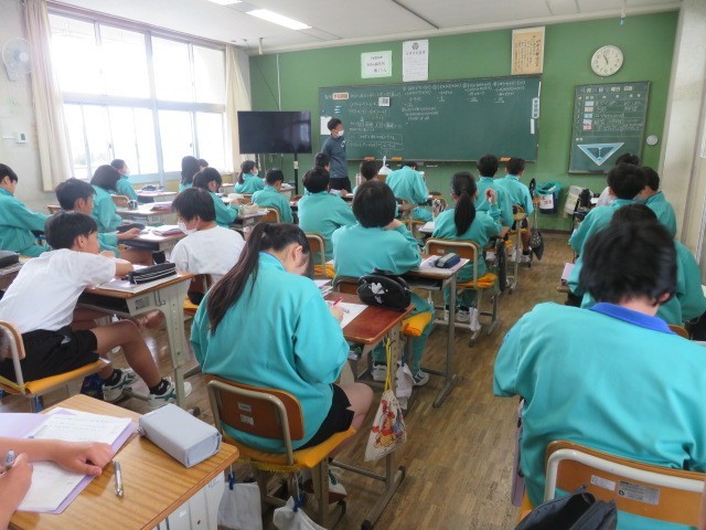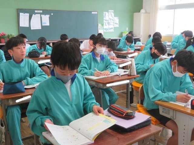 1年B組の数学の時間です。加法と減法の計算問題についての解説に耳を傾けています。