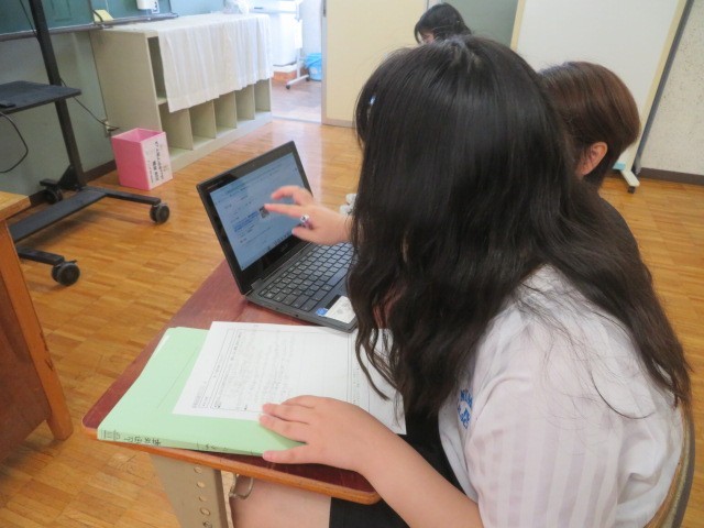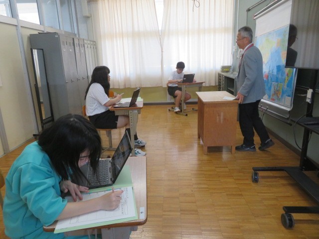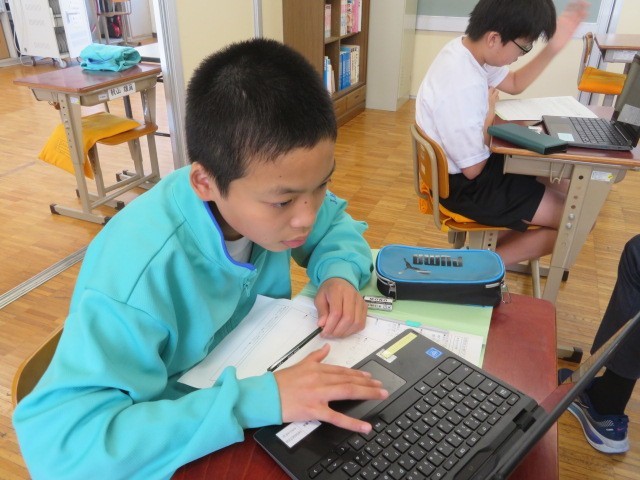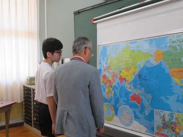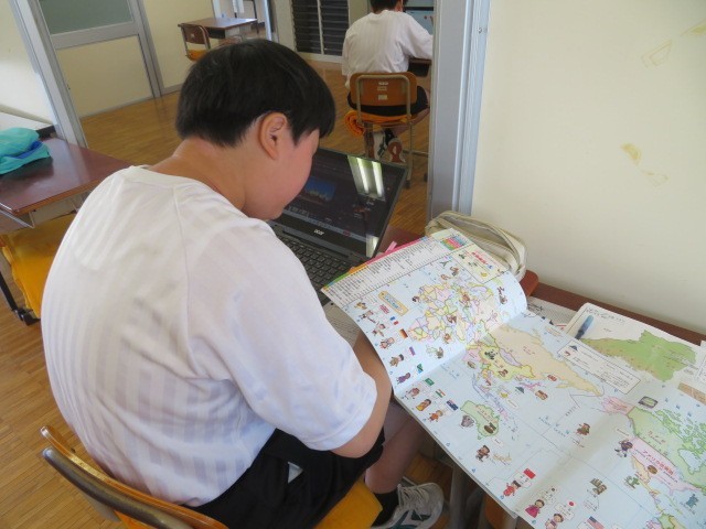 E組の社会の時間です。世界のいろいろな国々ついて調べています。