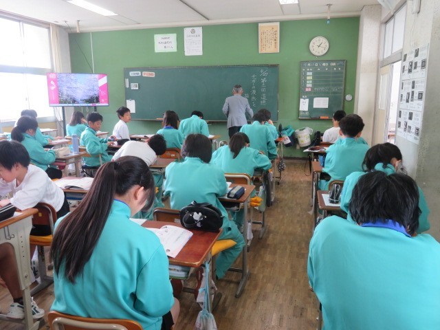 1年B組の道徳の時間です。「サッカーの漫画を描きたい」…まだまだサッカーが日本の中で今ほど人気が高いスポーツではない時代に、サッカーの漫画を描くという思いを実現させていった作者の思いを考えます。