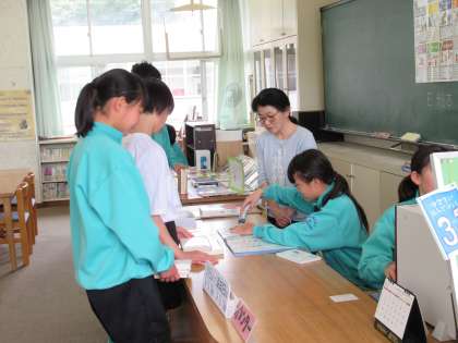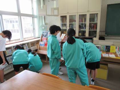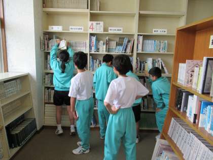 図書の分類を学んだ後、各自で興味ある本を探し、その場で借りました。