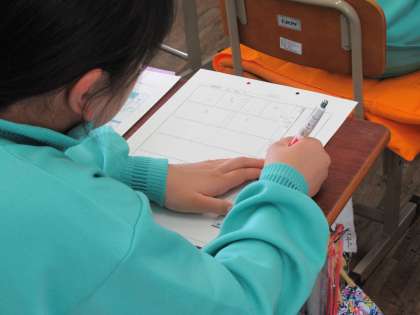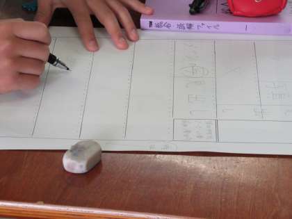 小学校で定規を使う習慣をしっかり身に付けているので、中学校でも定規を使うよう指導しています。これも大切な小中一貫教育です。
