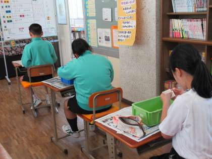 牛乳パックちぎりに、とても集中して取り組んでいます。