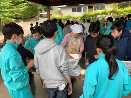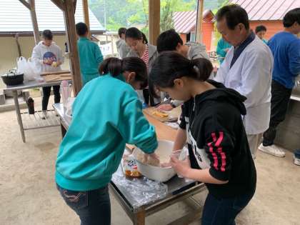 指導して頂く方をお招きして、ほうとうを作り始めました。班で協力する最後のプログラムです。