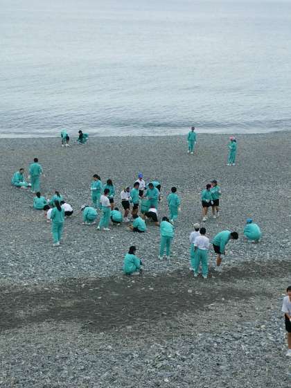 昼食後は、千本浜の清掃活動です。燃えるゴミを中心に一生懸命拾っています。