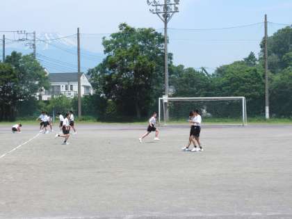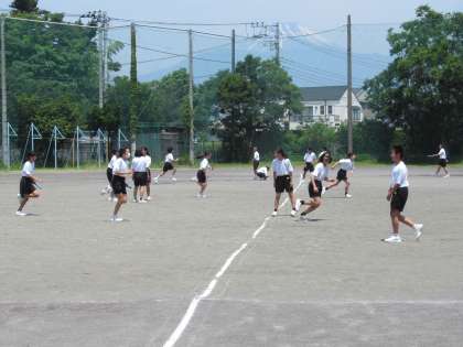 まだ暑さに慣れていないので、途中で、給水タイムを取り、日陰で休憩してから授業を再開します。