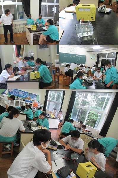 3B…理科 「塩酸に電流を流したらどうなるだろうか?」予想を立てた後、実験をしていました。