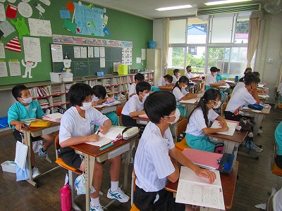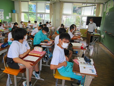 1A…理科 前時は、赤ワインからエタノールを取り出そう」の実験結果をもとに考察を行いました。今日は提出をした考察が返され、その評価についての説明を聞いているところでした。