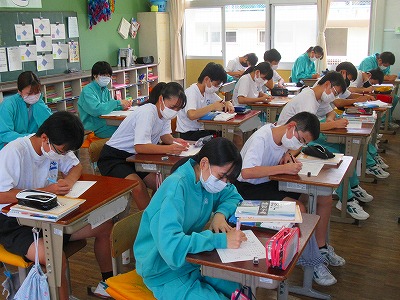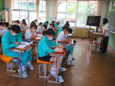 3C…国語 漢詩の授業です。杜甫や李白の詩を書き下し文にしていました。古典の授業ならではのしっとりとした時間が流れていました。