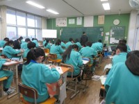 1年A組の理科の時間です。植物の種類について表に整理を行い、元気に発表しています。