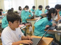 1年1組の保健体育の時間です。今日は教職員研修センターのアドバイザーの先生がお見えになり、授業の様子を参観してくださいました。新体力テストの結果入力を行い、安全にマット運動を行うために必要な注意事項の確認を行いました。