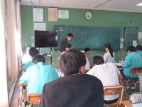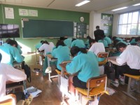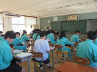 3年B組の家庭科の時間です。デザインの作成です。先生が手にしているのは小さなお友達に人気のキャラクター。デザインは、みんながよく知っているものといういう条件に、燕のキャラクターはどうか質問する生徒さんもいました。