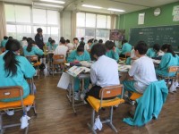 3年B組の社会の時間です。高度経済成長期の日本の変化の様子についてまとめています。