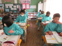 1年A組の国語の時間です。複数の情報を関連付けて考える力を身につけていきます。...