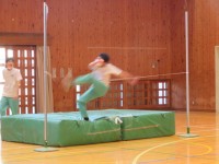2年A組の保健体育の時間です。ゴム紐を利用して跳ぶイメージを作っています。