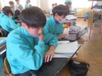 2年A組の理科の時間です。webサイトで天気図を見ながら、季節ごとの気圧配置を...