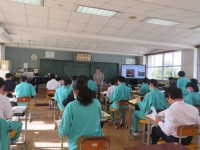 2年B組の英語の時間です。先日行った職場体験について、スピーチをしています。資...