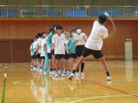 2年A組の保健体育の時間です。大縄跳びに挑戦しています。