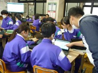 2年生は来年度4月に実施予定の全国学力学習状況調査に向けて、クロームブックで解答を入力する練習をしています。