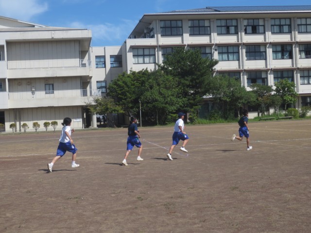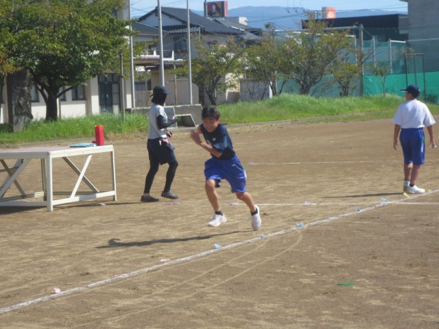 14体育では、体育の部に向けてリレーの練習をしています。クラスみんなで、バトンをつないでいきます。
