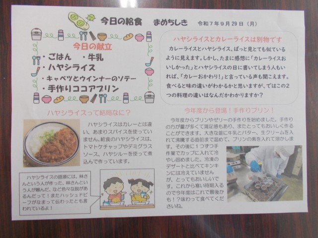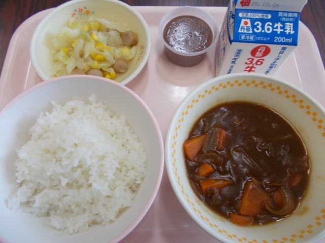 ハヤシライス 牛乳 キャベツとウインナーのソテー 手作りココアプリン