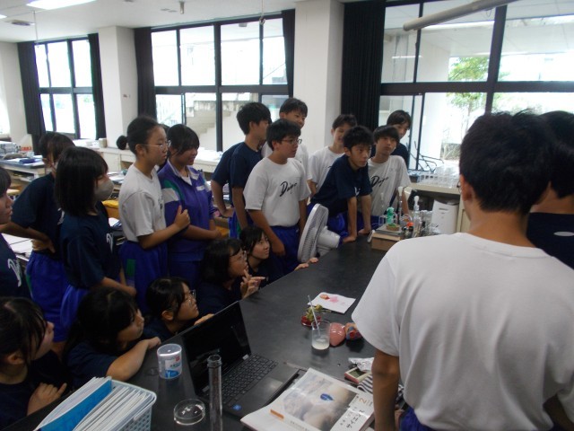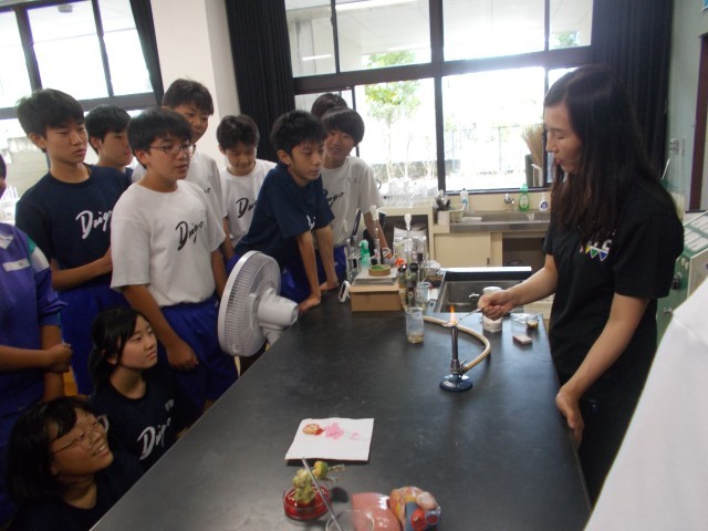 21の理科の示範実験の様子です。様々な教科と日常生活を結びつけながら、最適なものを見つけ出していきます。