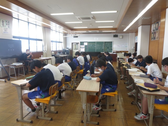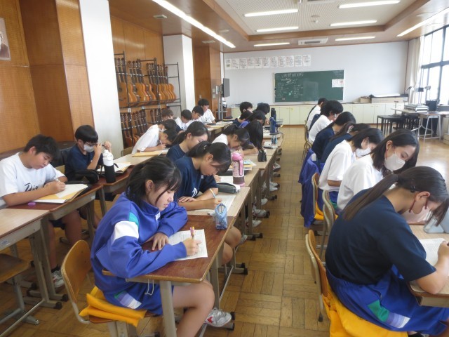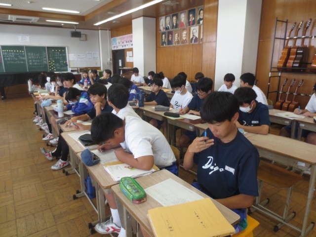 1-3音楽では、合唱の振り返りを行っていました。自分たちの合唱について、個人個人で自己評価を行っていました。