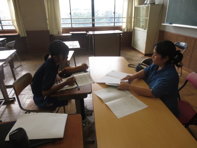 国際室では、取り出しの授業で日本語の学習をしています。学習した漢字を使って、短文を作り、より実用的な活用を目指していきます。