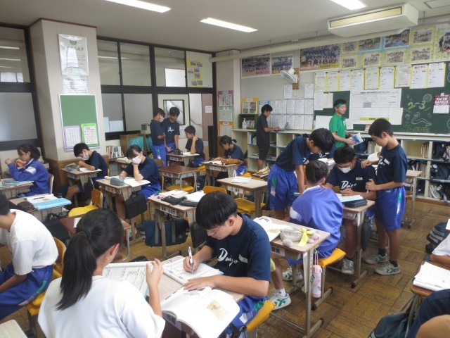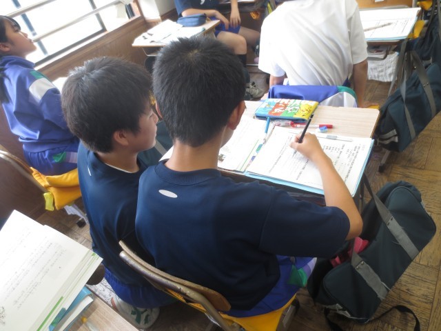 23国語では、徒然草をやっています。教え合い学習の中で、それぞれの文の意味について確認をしています。