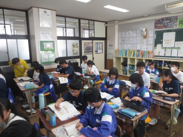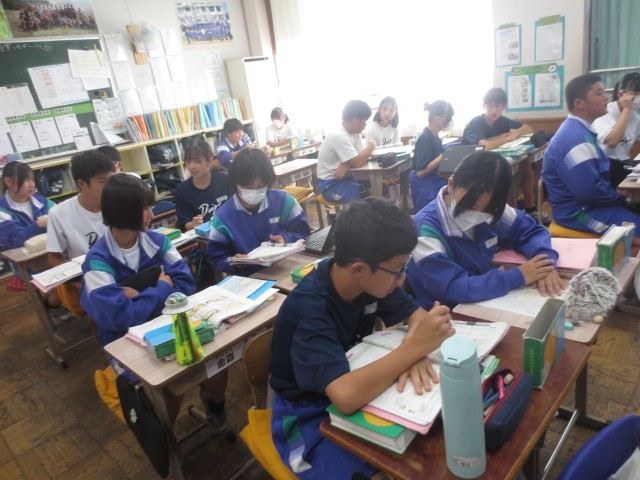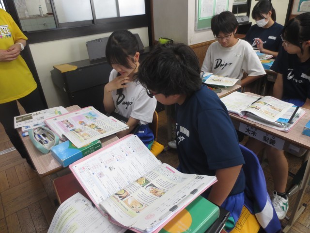 22英語では、沼津や静岡の有名な食べ物について、どのように伝えるかペアで話し合い、伝える内容を深めています。