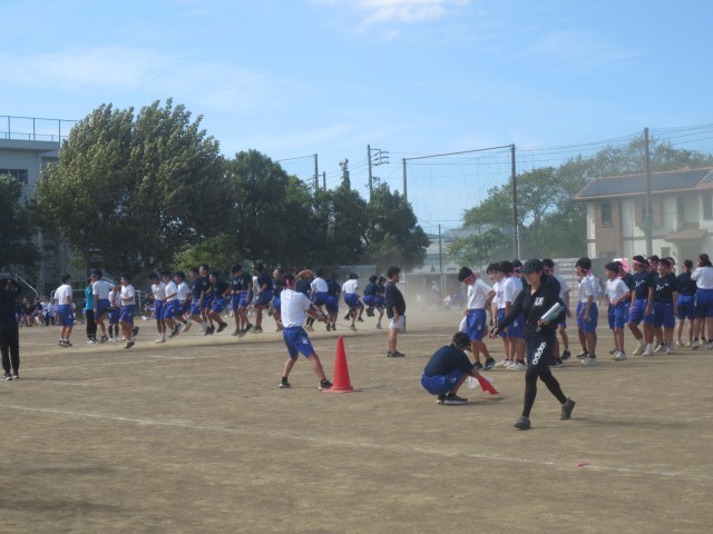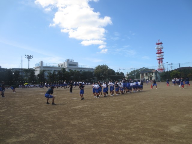 長縄の様子です。実際に2、3年生は、本番のように跳んでみました。