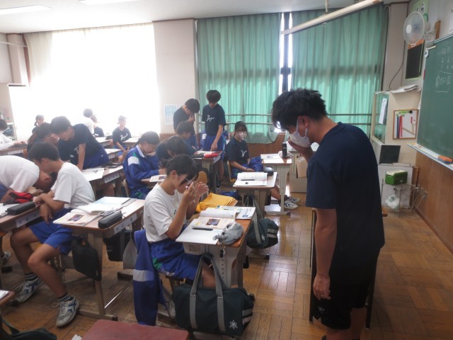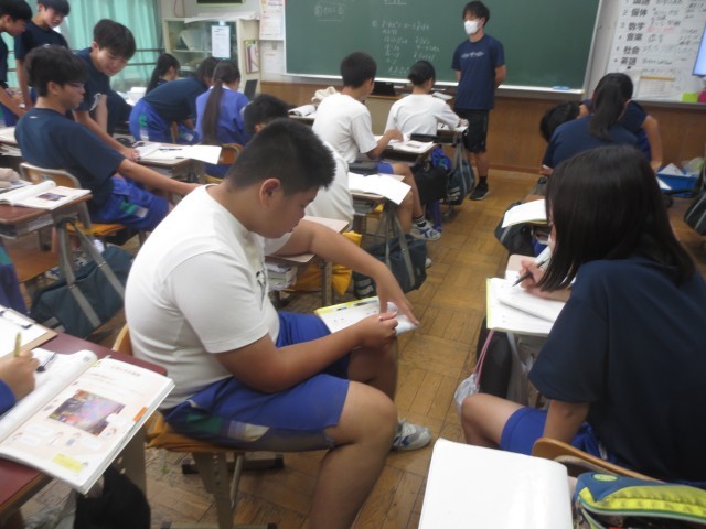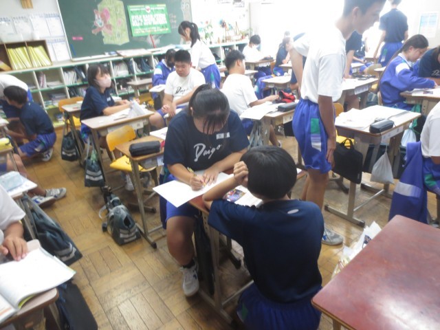 31数学では、教え合い学習です。自然とお互いのために、教え合いができるところがさすが五中生だなといつも感心させられます。